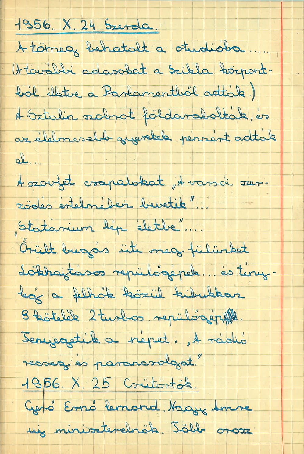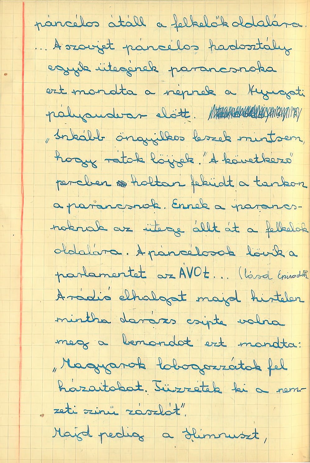 „A rádió elhallgat, majd hirtelen mintha darázs csípte volna meg a bemondót, ezt mondta: »Magyarok, lobogózzátok fel házaitokat!«”